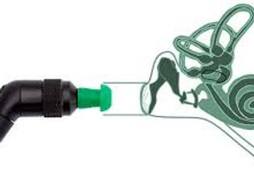 Bone conduction audiometry uses a bone oscillator. Placed behind the ear it vibrates to send sound directly to the cochlea. (Only if clincally indicated)